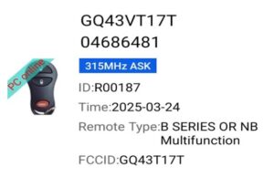 Utilizamos el manual AutoSmart para identificar el tipo de control compatible. Confirmamos que el vehículo contaba con transponder, pero no requería el uso de pincode. Se identificaron datos clave como el número de parte, FCCID y frecuencia del control.